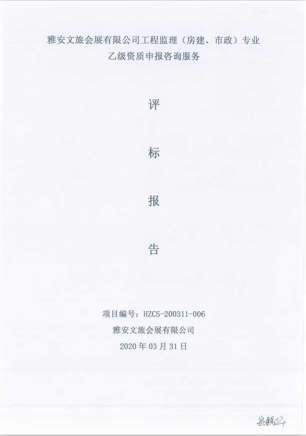 雅安文旅會展有限公司工程監(jiān)理(房建、市政)專業(yè)乙級資質(zhì)申報咨詢服務(wù) 成交公告公示