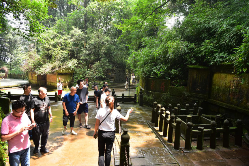 4日下午,旅行社一行走進(jìn)蒙頂山景區(qū),先后考察了蒙頂山景區(qū)甘露井、皇茶園等茶文化歷史遺跡,欣賞了蒙頂山非遺傳承龍行十八式茶技及天風(fēng)十二品茶藝并在蒙頂山天蓋寺皇茶樓就“名山旅游發(fā)展及如何吸引旅行社組團(tuán)到名山”進(jìn)行座談交流。