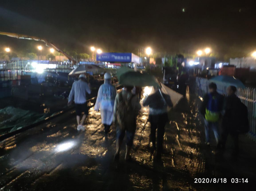 精誠(chéng)團(tuán)結(jié)。“嗚嗚嗚.....”,8月18日凌晨2:30,會(huì)博館項(xiàng)目現(xiàn)場(chǎng)10多名工人正在配合商混泵車(chē)澆筑混凝土,此時(shí)蔡銳接到上級(jí)通知“即將迎來(lái)水位上漲,要求會(huì)展項(xiàng)目人員馬上撤離!”,由于當(dāng)晚項(xiàng)目現(xiàn)場(chǎng)正在通宵澆筑12區(qū)抗水板混凝土,項(xiàng)目現(xiàn)場(chǎng)有管理人員30余名、項(xiàng)目工人60余名,此時(shí)混凝土澆筑工作還需約2小時(shí)才能完成。她第一時(shí)間通知應(yīng)急救援領(lǐng)導(dǎo)小組和項(xiàng)目管理人員“立刻啟動(dòng)緊急避險(xiǎn)措施,時(shí)刻觀(guān)察水位,快速組織現(xiàn)場(chǎng)所有人員撤離!”。她賡即趕到現(xiàn)場(chǎng),與應(yīng)急救援領(lǐng)導(dǎo)小組一同組織現(xiàn)場(chǎng)人員有序撤離。為防止中斷澆筑造成項(xiàng)目損失,現(xiàn)場(chǎng)項(xiàng)目管理人員不愿撤離,但汛情就是命令,蔡銳帶領(lǐng)應(yīng)急救援領(lǐng)導(dǎo)小組堅(jiān)持生命至上原則,做好項(xiàng)目管理人員思想工作,緊張、團(tuán)結(jié)、有序分班組集合點(diǎn)名、分批撤離項(xiàng)目工人,截止凌晨4:48,90余名現(xiàn)場(chǎng)人員全部安全撤離。