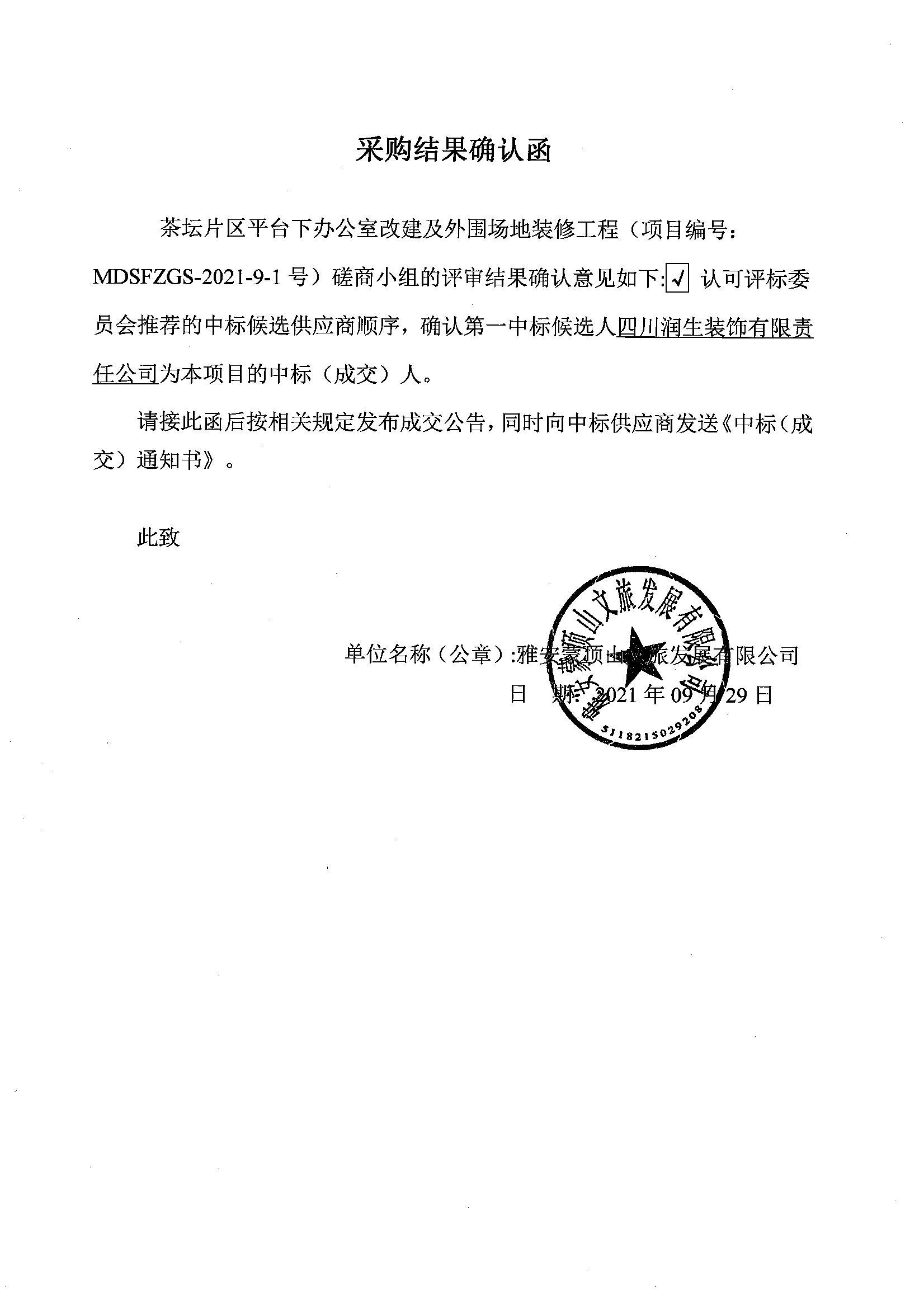 茶壇片區(qū)平臺下辦公室改建及外圍場地裝修工程采購結(jié)果確認(rèn)
