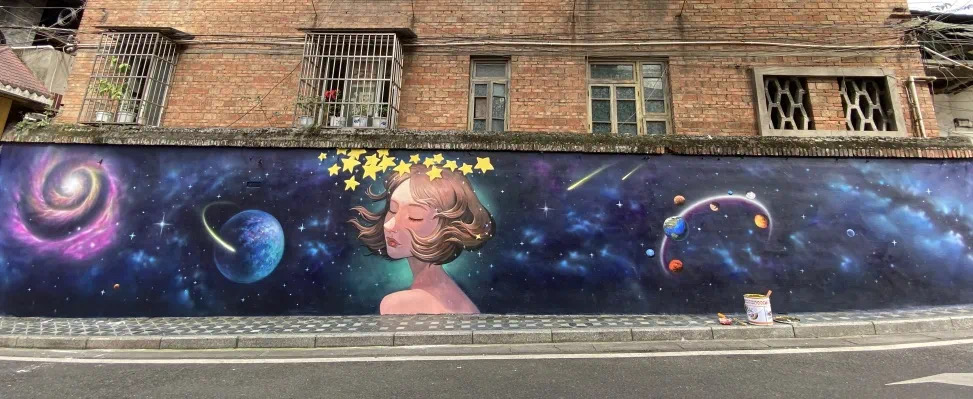 二是發(fā)揮創(chuàng)意設(shè)計(jì),扮靚城市色彩。文旅集團(tuán)墻繪善于創(chuàng)意設(shè)計(jì)矩陣搭建,作為城市形象提升的助推劑。把大熊貓城市吉祥物IP與價(jià)值觀念和文化信息意識(shí)標(biāo)語(yǔ)墻繪相結(jié)合,讓“雅雅”“安安”成為精神文明建設(shè)宣傳小能手;彩繪“大魚(yú)海棠”“宮崎駿”動(dòng)漫IP設(shè)計(jì)更新社區(qū)墻面,讓老舊小區(qū)成了藝術(shù)街區(qū);“金光夾金山”“蒙頂山采茶”“達(dá)瓦根扎星云”原創(chuàng)風(fēng)景插畫(huà)與國(guó)道、省道、隧道墻繪相融,為過(guò)境游客提供視覺(jué)盛宴;草壩黃金沙灘墻繪采用高飽和度配色,附加趣味打卡陣列裝置,打造全市最大臨江彩繪墻,春節(jié)開(kāi)放以來(lái)吸引6萬(wàn)人次前往打卡。
